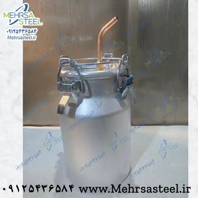 دیگ تقطیر و عرقگیری 200 لیتری کارگاهی و صنعتی مهرسا استیل که در صورت درخواست مشتری می توان آن را به نشانگر دما و فشار، شیر تخلیه برنجی (نصب شده با جوش آرگون و آب بندی شده) مجهز کرد.