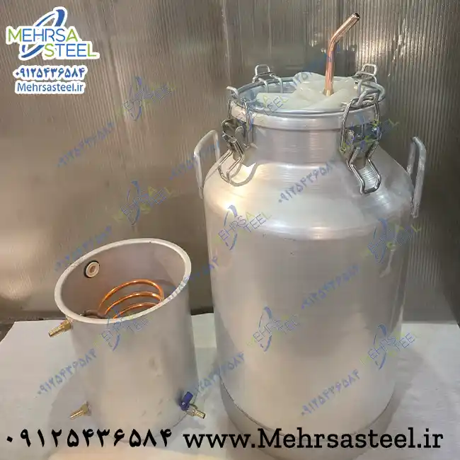 گلابگیر 50 لیتری با کندانسور آبی (کندانسور کوچک) مهرسا استیل با کندانسور آبی و شیلنگ سیلیکونی یک مجموعه کامل برای گلاب گیری و تقطیر عرقیات و گلاب و … می باشد.